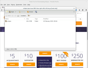 You can download Eclipse IDE and then open it in Fedora’s Archive Manager. You can use the Archive Manager to Extract the Eclipse IDE to a directory of your choice. I opted to extract it into my student user’s home directory, which is /home/student.