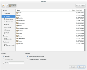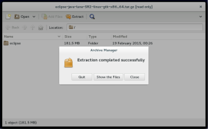 - This extract button on file chooser dialog to install Eclipse into the /home/student/eclipse directory. Click the Extract button to let the Archive Manager create a copy of those files.