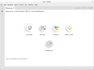 - After setting the Workspace Launcher, you open to the Eclipse Welcome page. Click second of the two icons on the left to open a working Eclipse environment. Alternatively, you can connect to Tutorials on the same page.