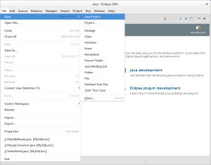 - From the developer view, click on the File menu option, the New option on the list, and the Java Project option on the floating menu. Eclipse will now create a new Java project.