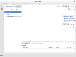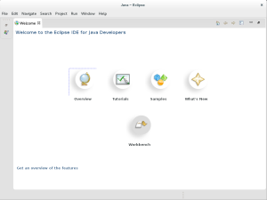 - After creating the new Java project, Eclipse returns you to the Welcome page. Click second of the two icons on the left to open a working Eclipse environment.