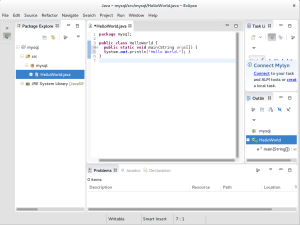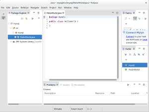 - Eclipse generates the shell of the MysqlConnector class as shown in the illustration to the left.