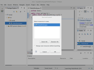 - The Save and Launch dialog tells you that you’re ready to test creating a copy of the Java class file. Click the OK button to continue.